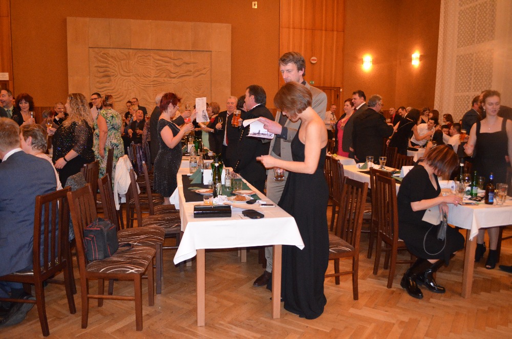 Organizátoři plesu si během večera zazpívali s hosty nádhernou karmínu „Kamarádi, dolů sfárejme“ a troufnu si říci, že tato píseň má vždy neskutečný úspěch, protože je zpívána hornickým srdcem a nadšením.